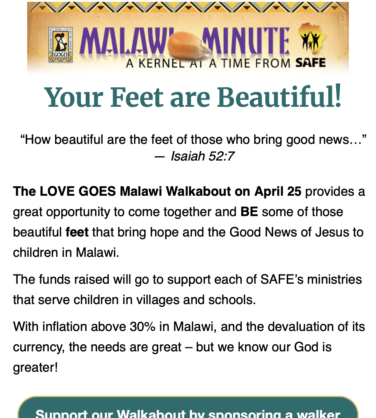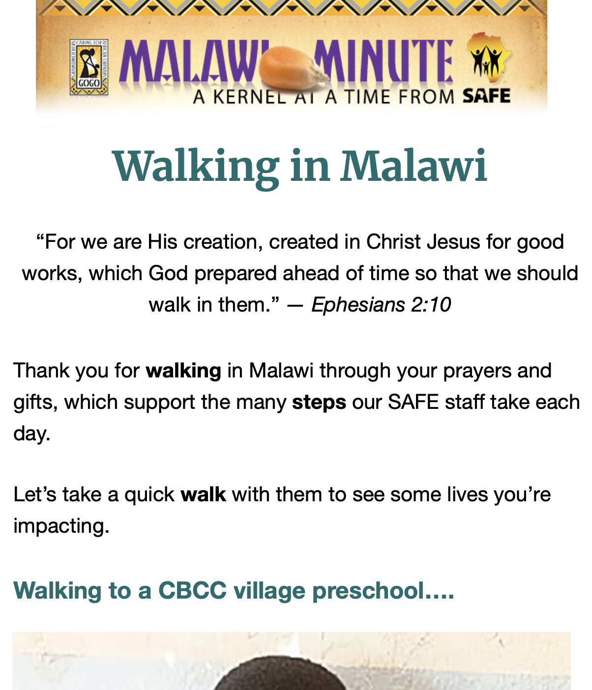Gogo / SAFE Groups across America are putting love and care for Malawi village gogos, orphans and youth into action. Chartered groups receive tools, training, promotional resources, ideas and regular news from their village. Participants often comment on how this involvement blesses their life as well. What a Group group can accomplish is amazing.
